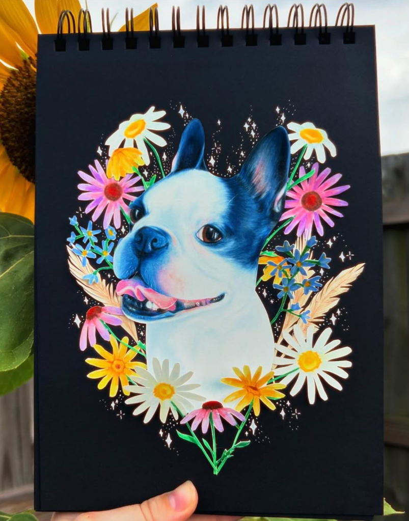 “I am absolutely blown away by the portrait Harlie created of my beloved Scout! From the moment I saw the finished piece, I was moved to tears. Harlie didn’t just paint a picture; she captured Scout’s unique personality and spirit.